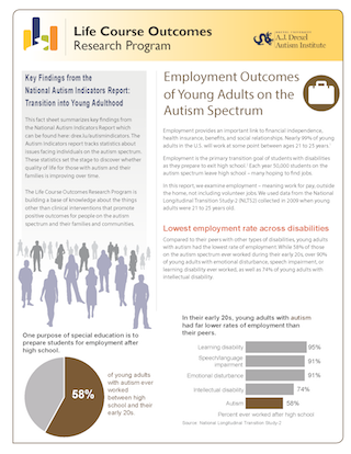 TheĀ National Longitudinal Transition Study-2 found that in their early 20s, young adults with autism had far lower rates of employment than their peers.