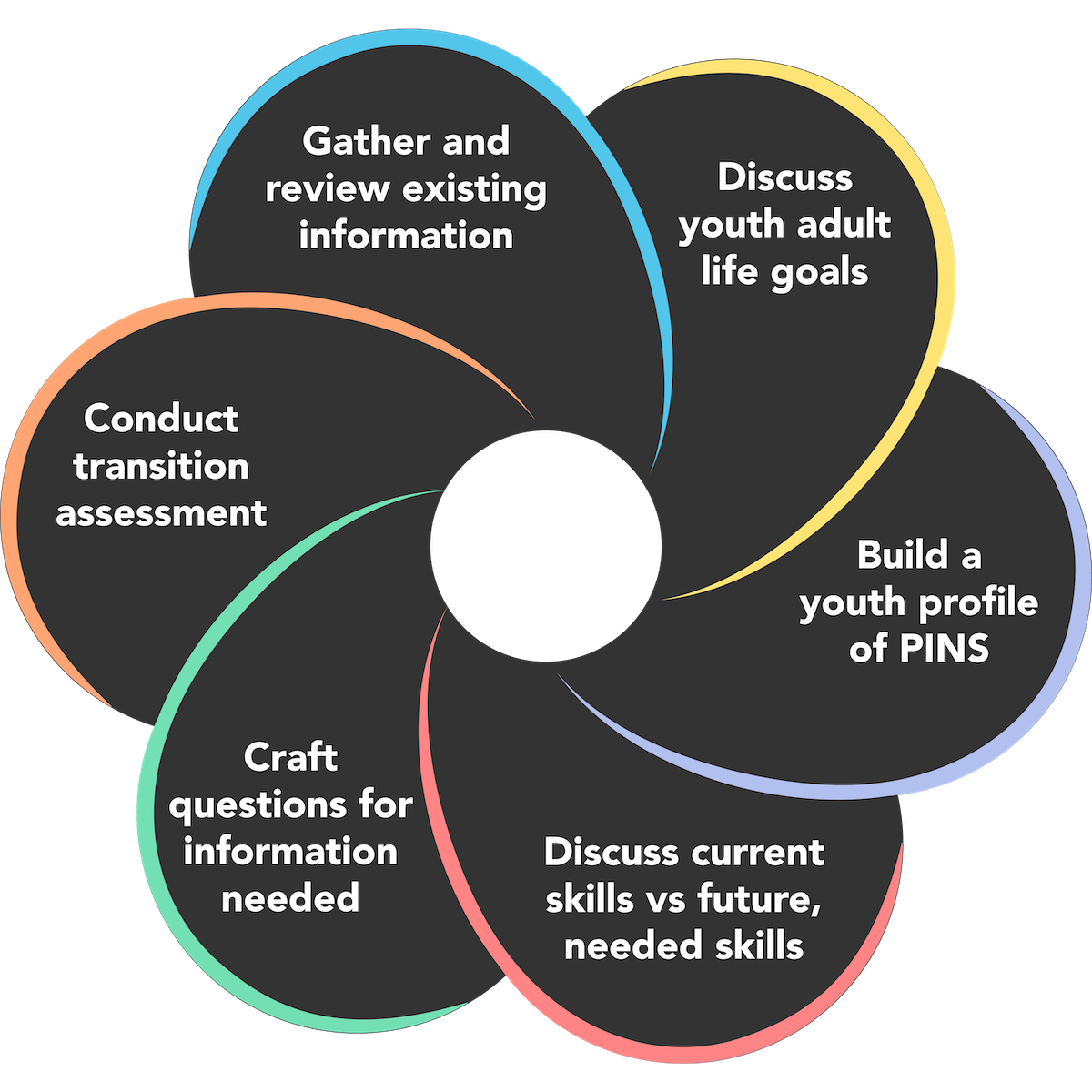 Throughout this guide, you will be introduced to the planning process for transition assessment. It is important we intentionally plan for transition assessment to ensure we reduce duplication, build on a student's progress, and identify individualized assessment to build the youth's profile in relationship to those skills needed for their adult life goals.