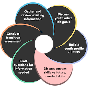 Question Three, the "Right Fit'', helps discover how well aligned the youth's current skills are to the set of skills needed in the future. This step creates awareness of the connection between the youth's PINS and the skills needed to obtain the identified adult life goals. Additionally this step facilitates the identification of gaps in important skill sets.