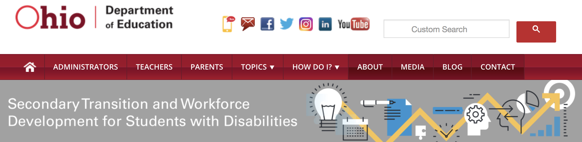 The Ohio Department of Education (ODE) focuses on employment outcomes for all students, including students with disabilities. Career development and resulting adult employment is the single most important goal of education. Many state agencies work together with ODE to support youth to begin their career journey early in life. The OCALI Transition Guideline Series reviews more details on career development during the school years in the guideline, "Transition Planning and the IEP'. Please review this guideline to learn more.