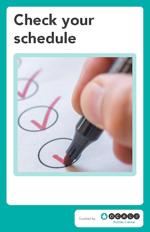 These 'what to do' word cards should be portable and available at any time. They may be represented by pictures, symbols, real photos, or objects. Include the printed word/s on all cards so that all adults using the 'what to do' cards are using the same language consistently. They may vary in size, such as 3'x3' or larger. Adapt the size of the card to meet the learner's needs. For quick access by all adults, these cards can be attached to an adult's lanyard, key ring, belt loop, or placed in a pocket. Please refer to the tutorial video (below) for instructions on making and using the cards.